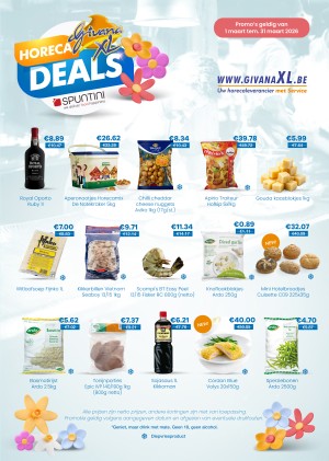 Welkom bij GivanaXL! Uw horeca groothandel voor professionals, particulieren en verenigingen. Log in of registreer meteen en bekijk meer dan 9.000 overheerlijke producten. Heeft u een vraag? Aarzel niet ons te contacteren!