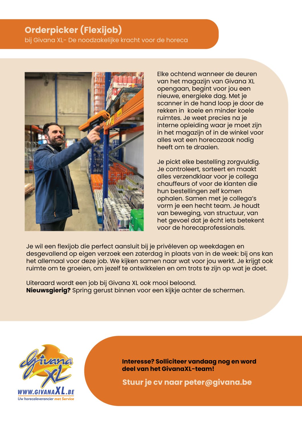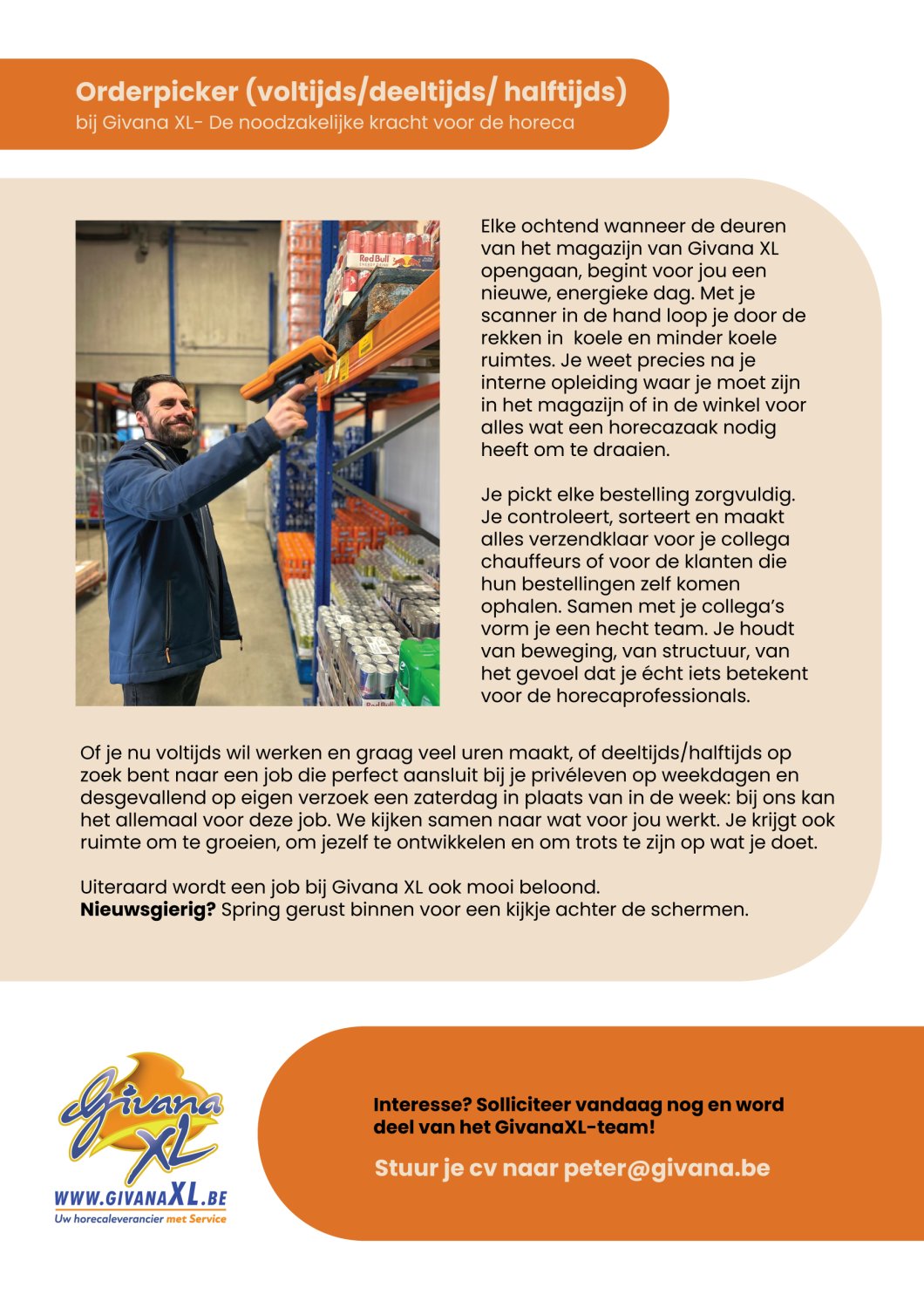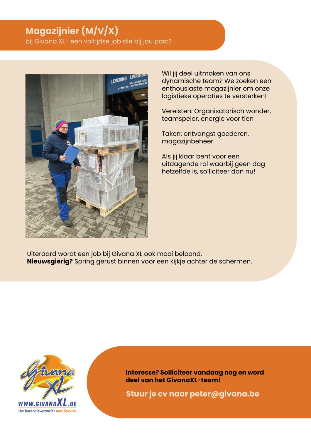 Voor onze groeiende horecagroothandel is GivanaXL op zoek naar gemotiveerde collega’s voor volgende functies: