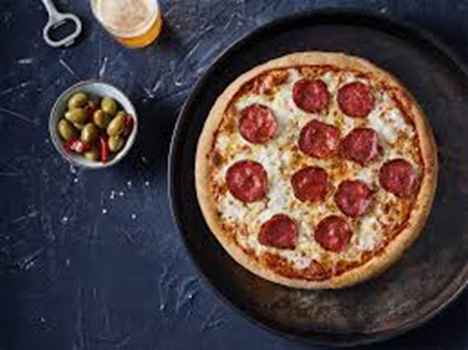Onze authentieke Margherita alvast afgetopt met de lekkerste pepperoni.
