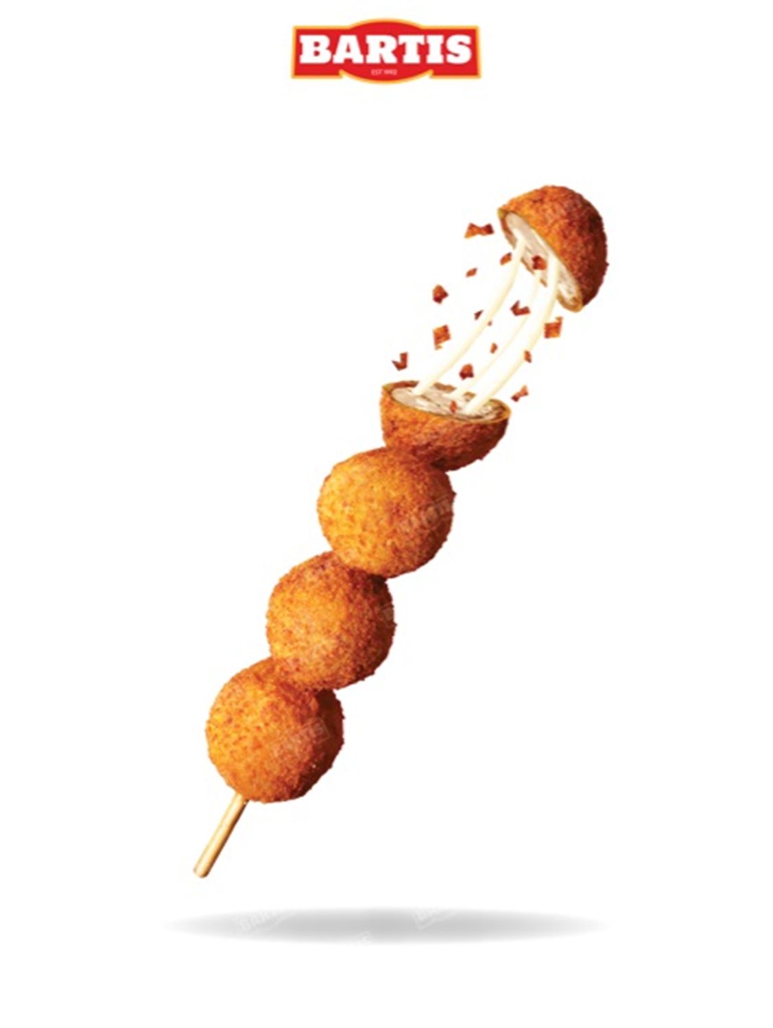 Krokante kippenballetjes met een smeuïge kaasvulling.