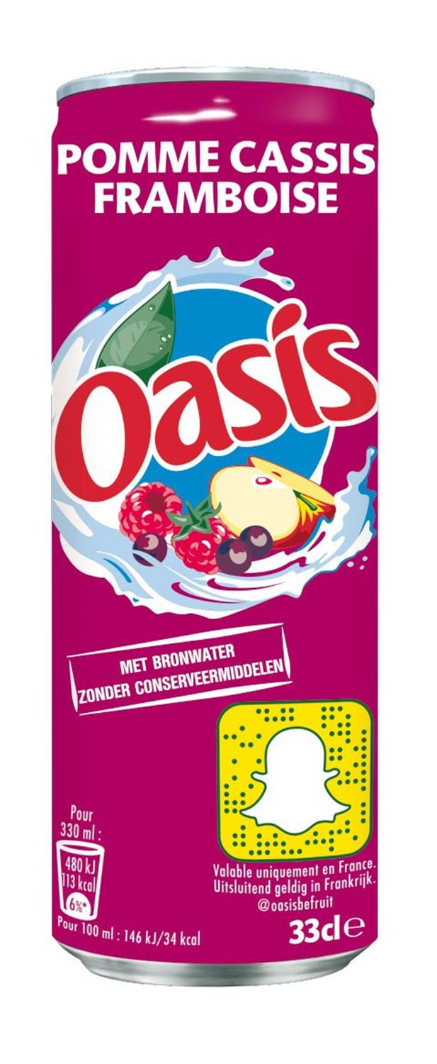 Oasis brengt je in een nieuwe wereld met de smaak van Appel, Zwarte Bessen en Framboos! Een explosie van rood fruit in een blik! Bevat geen koolzuur.