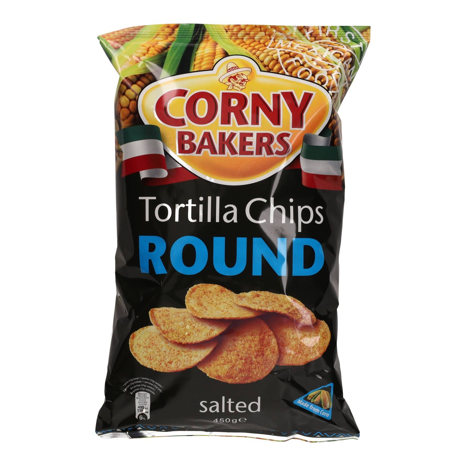 De bekende chips gebakken van maistortilla's en gezouten. Iets dikker zodat ze niet slap worden.
