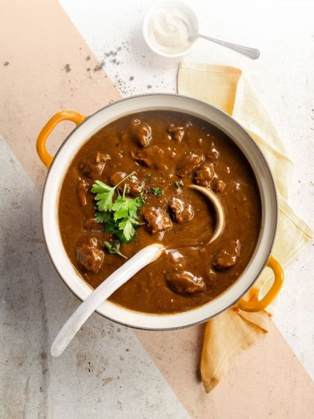 Het belangrijkste ingrediënt van stoverij: tijd. Een lekker langzaam pruttelende pot bomvol lekkere ingrediënten die de hele keuken vult met zijn gelukzalige geur. Vlaams rundvlees en Roeselaars Rodenbachbier.